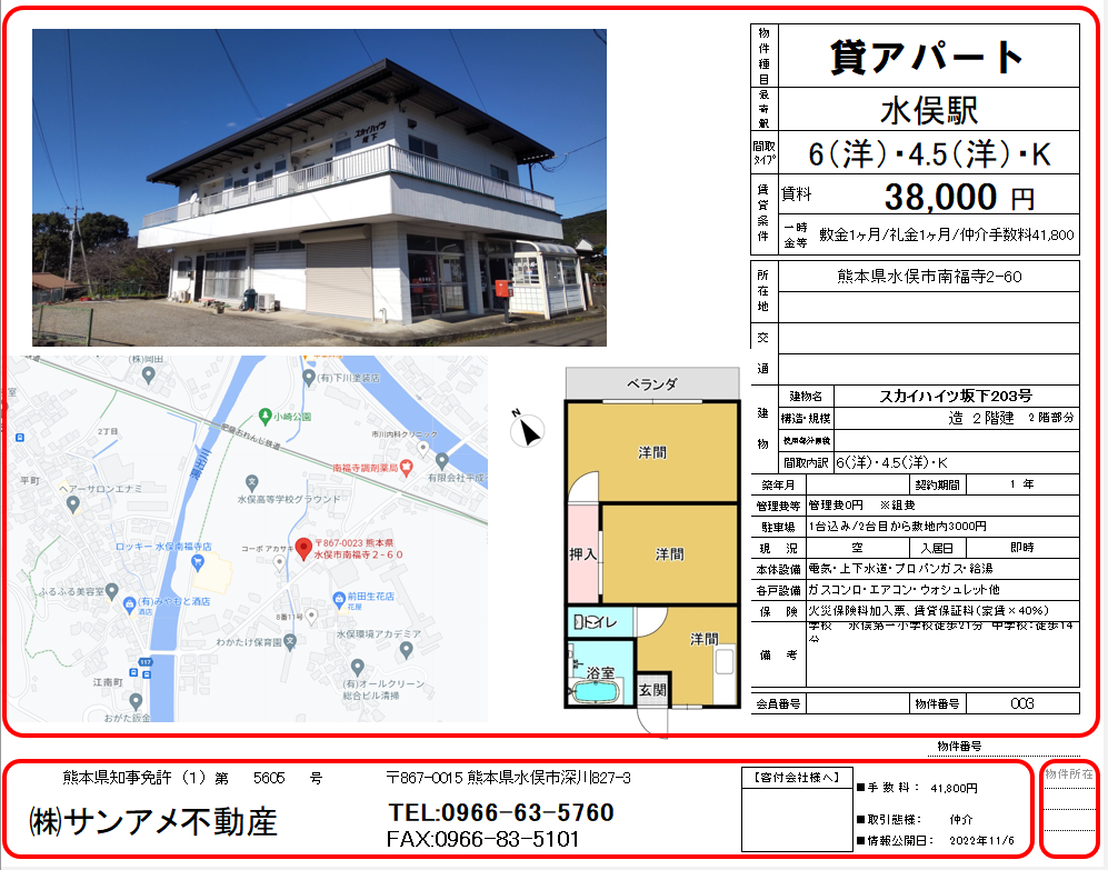 水俣市南福寺 スカイハイツ坂下203号(洋室化リフォーム済み)